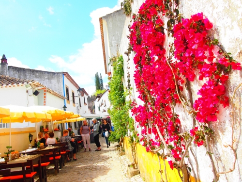 日本でもお馴染みの藤の花や、赤が綺麗なブーケンビリアが、さらにオビドスを素敵に飾ってくれます。
