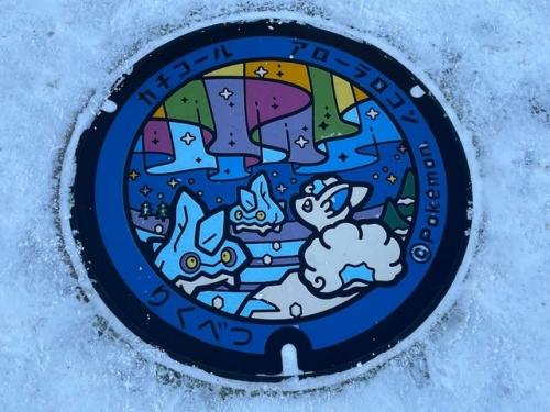また、館外の正面入口前には現在の気温が判る温度計が設置されているほか、北海道らしさが感じられる牛さんのベンチ、ファンも多いポケモンのご当地マンホールなどもあり、見どころがいっぱいです!