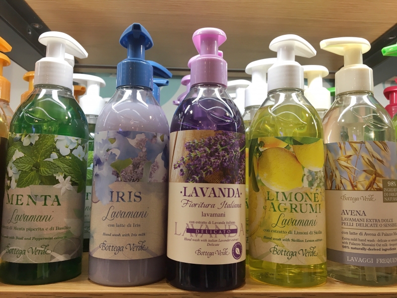 テルミニ駅地下にあるナチュラルコスメショップ「Bottega Verde」では、ハンドソープ、ハンドクリーム、リップ、ヘアケア製品などを買うことができます。お土産にすると喜ばれる定番です。色々なハーブや花、植物を原材料としていて種類が豊富なので、お土産をあげる相手をイメージしながら選ぶのもおすすめです。
