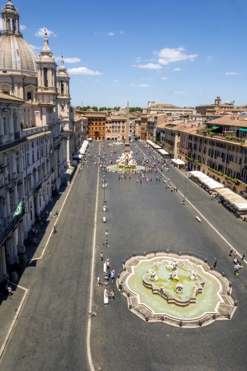 広場の中心には、【3】スペイン広場の段でも紹介したローマを代表する天才芸術家・ベルニーニが手がけた「四大河の噴水」があり、ベルニーニ作品の中でも傑作と称されています。それゆえに多くの観光客で賑わっているのですが、ローカルの待ち合わせ場所としても親しまれているスポットです。