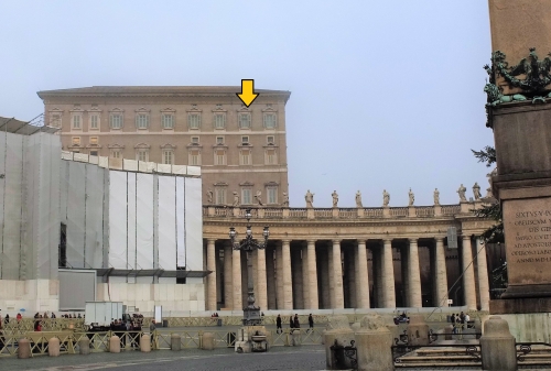 出典:tripnote.jp奥にあるのが教皇の邸宅。矢印のお部屋から顔を見せる