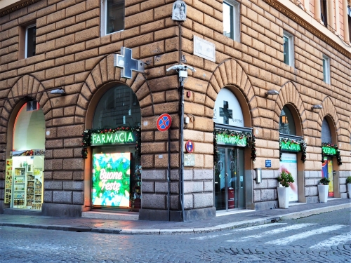 こちらは、町中でよく見かけるドラッグストア。薬だけでなく、化粧品やソープなども扱っています。店舗によっては、お土産用のパスタや雑貨などを扱うお店もありました。