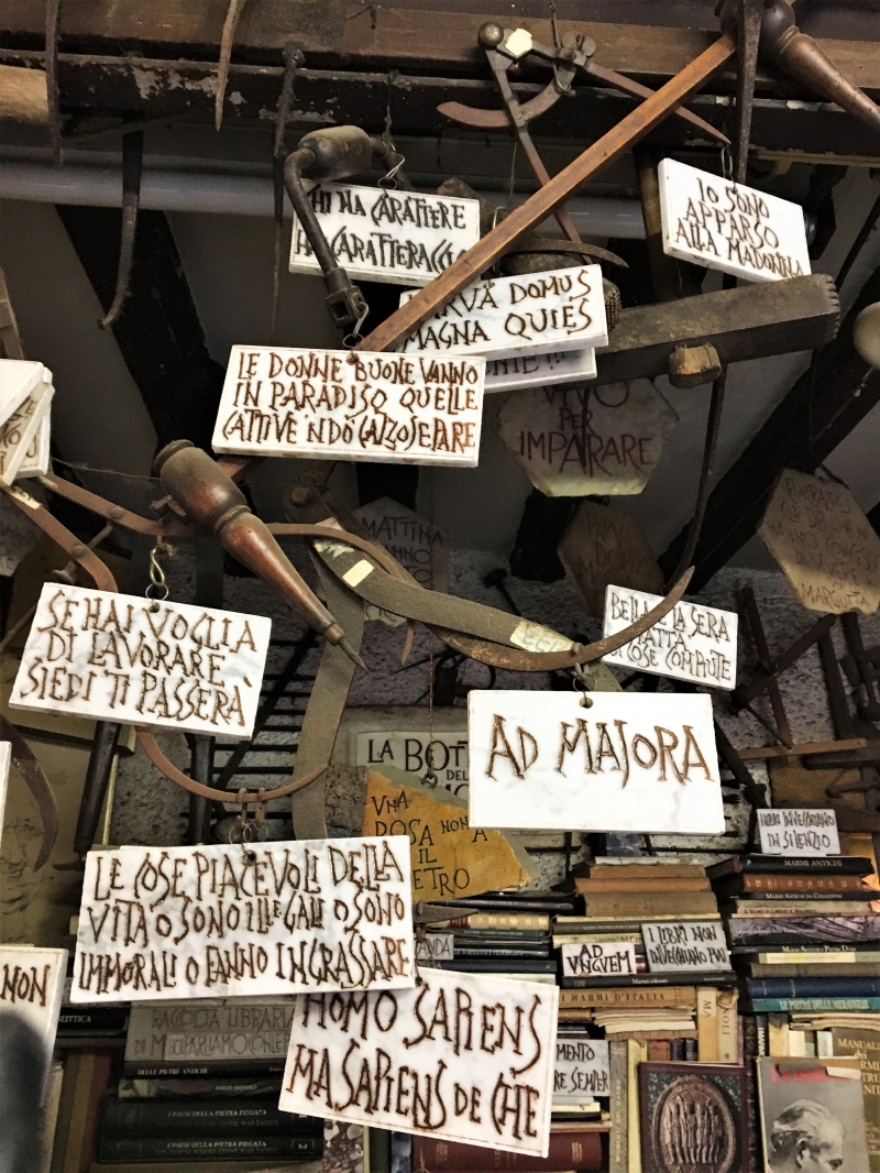 小さな工房に、大理石のプレートがたくさん。気の良いお父さんが、希望する文字を大理石に彫ってくれるので、世界に一つだけのお土産です。表札など、新たに作ってもらう場合は、日数を要しますが、すでに彫られたプレートを購入するのなら簡単です。イタリアらしく「人生は美しい」とか「甘い生活」とか、詩的な言葉もありますよ。