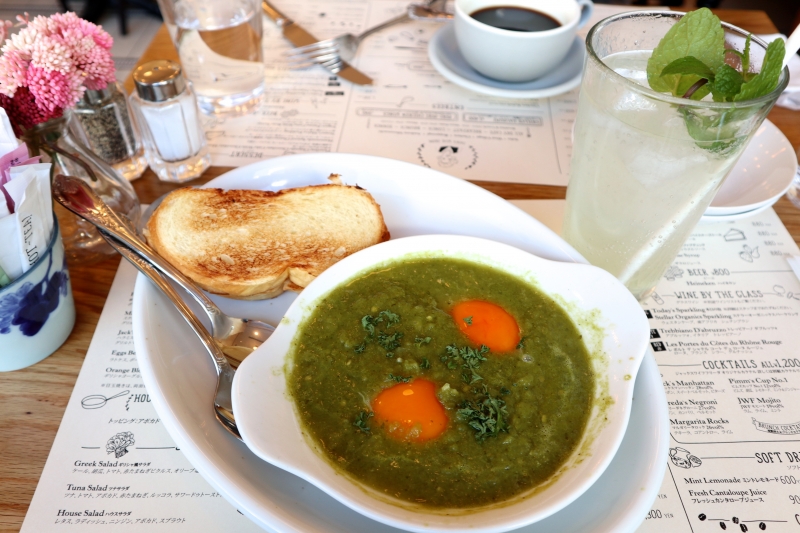 軽くトーストされたふわふわのブリオッシュが2枚ついた、「グリーンシャクシュカ」はイスラエル料理。玉ねぎとパプリカを緑色のトマトで煮込み、クミンやコリアンダーなどのスパイスを効かせたソースに卵を落とした、一風変わった料理です。ジャックスワイフフリーダの必食シグニチャーメニューですので、前菜やサラダ代わりにオーダーしてみてはいかがでしょう。