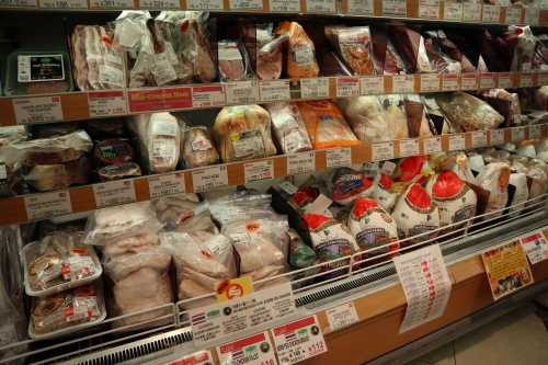 肉売り場では、変わったものでは、オーガニックラム肉や、ターキー、ウサギの肉まで売られています。また、スモークサーモンコーナーでは、その種類の多さに驚かされます。