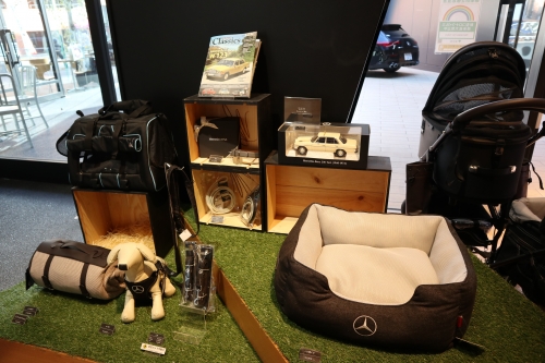 ショップでは、メルセデスとサムソナイツのコラボスーツケースや、Mercedes me 限定グッズ、モデルカーなどが所狭しと陳列されています。ベンツマーク入りのラグジュアリーな雰囲気の雑貨類は、ギフトにも良さそうです。
