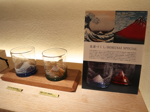 江戸切子など伝統工芸の美しいガラス製品に目を奪われますが、中でも「漆硝子」と呼ばれる、漆と硝子を定着させた器が一際美しく、お店のスタッフさんにもおすすめされたのでご紹介します。