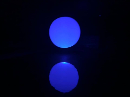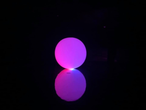 カラフルにぼんやりと光る球体が浮かんだり、地面に落ちたり、空間の中ほどに留まったり。