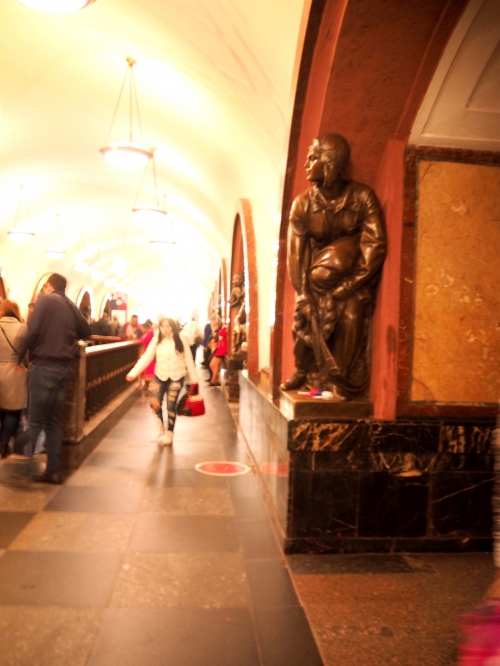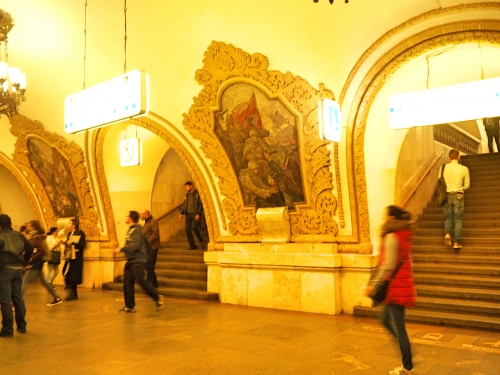 長い長いエスカレーターの後に出てくるホームは、どこの駅も豪華絢爛。駅ごとに装飾も異なっているので、地下鉄の駅をめぐるだけでもとても楽しいですよ。