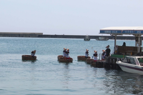 佐渡でおすすめのアクティビティが、たらい船。宮崎駿監督の作品『千と千尋の神隠し』にも登場する、大きなたらいの上に乗って、ゆらりゆらりと海上散歩を楽しみましょう!普通の船では決して味わえない、スリルも味わえますよ。