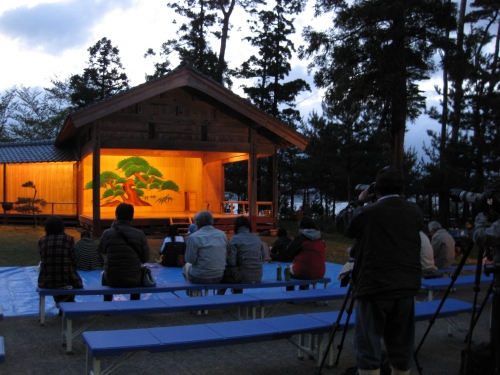 演能は、4月から10月にかけて多数開催されますが、6月から8月に最も多くなり、特に6月は薪能月間として毎週、島内のあちこちで観ることができます。