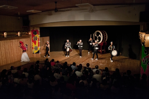 芝居小屋の昔懐かしい雰囲気が残る小規模な公会堂での演奏は、メンバーとの近さが最大の魅力。演奏が始まると会場全体が、太鼓の振動で空気が震えるという大迫力です。