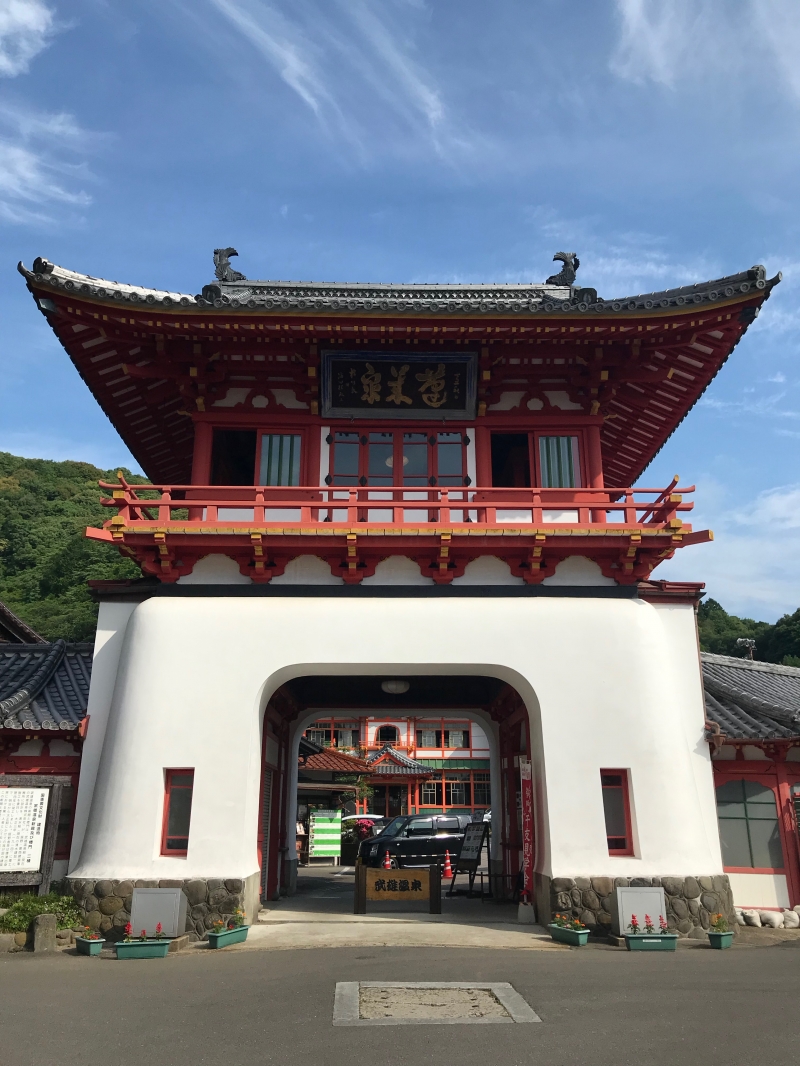 武雄のシンボルといえば、「武雄温泉楼門」です。武雄温泉街を歩いていくと見えてきます。東京駅を設計した辰野金吾博士の設計で、大正4年の創建です。釘を一本も使用していない天平式の楼門となっています。
