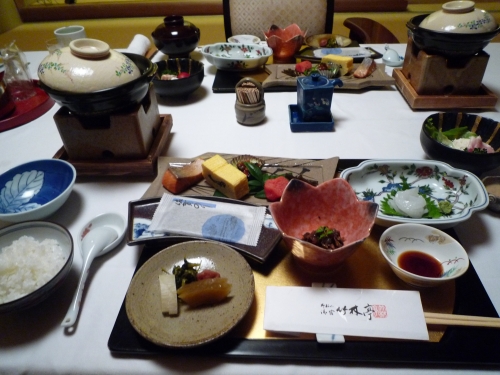 「料理の鉄人」に出演されたご主人によるお料理に定評があり、お部屋でいただく懐石には季節の食材がふんだんに使われています。到着時にいただく、お抹茶とおはぎも絶品です。夕食時こどもには、ハンバーグやエビフライといった定番のお子さまランチをつくってくださる心遣いが嬉しいですね。