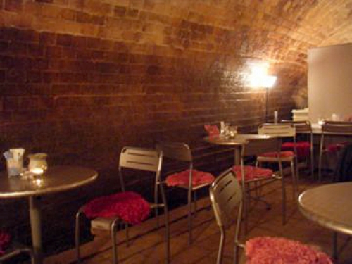 普段は、窯の中が一部ギャラリーになっていて見学することができますが、灯ろう祭りのときだけは、カフェに早変わり。期間限定のオリジナルケーキとハンドピックが自慢な「喜蔵」の楼門コーヒーがセットで味わえます。煉瓦づくりの内部は薄暗く、とてもロマンティックな雰囲気。窯の中でコーヒーをいただく体験は貴重です。