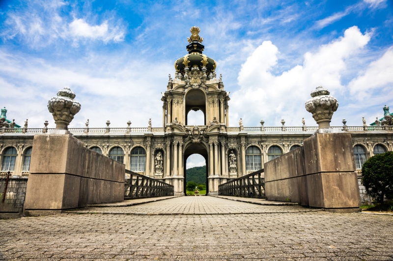 17世紀にヨーロッパへ輸出され王侯貴族を魅了した有田焼。ドイツ・バロック建築の宮殿を再現したポーセリンパークは、有田焼の作品展示や体験工房のほか、お食事処でのバイキングや宗政酒造の試飲や販売などが楽しめるテーマパーク。シンボルのツヴィンガー宮殿は映画の撮影に使われたり、コスプレの聖地としても人気があります。