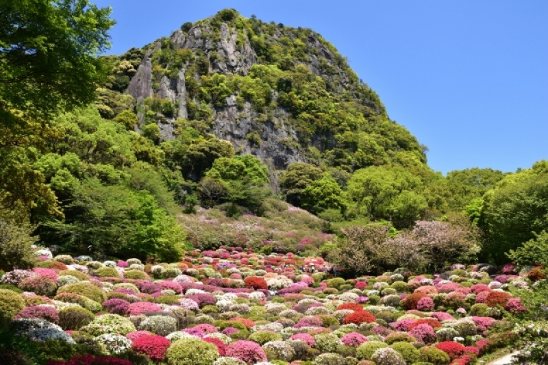 鍋島茂義が狩野派の絵師を京都から招き、3年かけて造られた池泉回遊式庭園。東京ドーム10個分の広大な敷地では四季折々の花を楽しむことができ、とくに春のツツジが評判です。20万本の色とりどりのつつじが、まるで絨毯を敷き詰めたように広がる絶景が多くの人を魅了します。また秋には”紅葉まつり”が開催され、約4万坪の日本最大級の紅葉ライトアップが楽しめます。