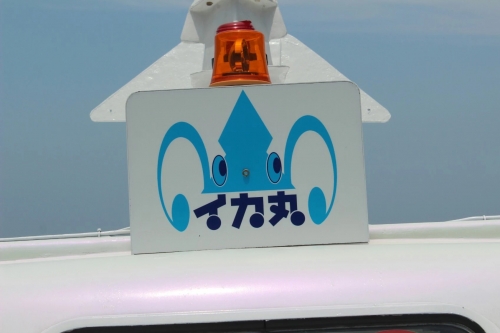 呼子を観光する上で外せないのが、マリンパル呼子の遊覧船「イカ丸」。「イカ丸」は神秘の洞窟「七ツ釜」探検を楽しむことができる船です。遊覧船の側面には、かわいらしい目をした大きなイカが!