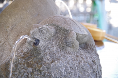 鳥居をくぐると、右手に神楽殿、そして左手には手水舎が現れます。心と体を清め、参拝に挑みます。
