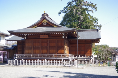 社殿は総檜ででき、権現造(ごんげんづくり)。拝殿は正面大切妻入り母屋造り。荘厳な調和がとれた、大変美しい神秘的な作りになっています。