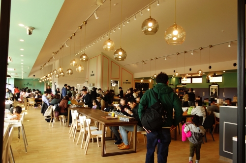 レストランが入ったViking hall/ヴァイキングホール1階では、フィンランド創業の「ロバーツコーヒー」をはじめとして、無添加・天然素材にこだわる「らーめん AFURI」や、常設店として初出店となる「ONE MORE BITE」が入っています。2階フロアを占めるのは、北欧のスモーブロー(オープンサンドイッチ)専門のレストラン「LAGOM(ラーゴム)」。ここは、席数も多いので、混雑時もそう待たずに座れるようです。窓際からは宮沢湖の景色を眺めながらお食事を楽しむことができます。