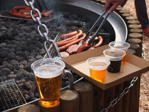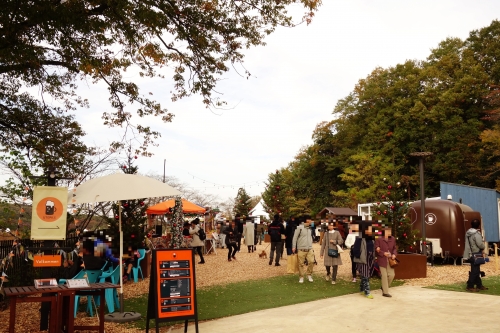 屋外でクラフトビールやおつまみを楽しめるのが、Utepils/ウーテピルス。「太陽の下でビールを楽しむ」という意味の通り、ウッドチップを敷き詰めた広場にコンテナが配されたスペースで、デイキャンプ気分が堪能できます。この日は、クラフトショップも開催され、盛り上がっていました。