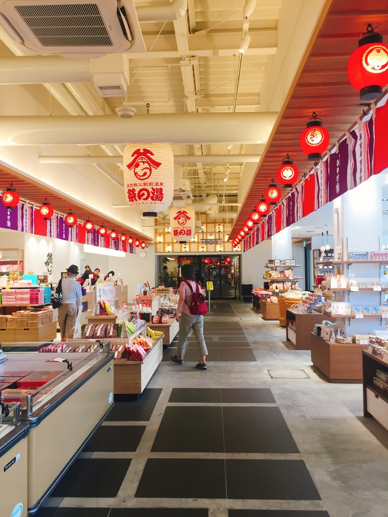 「祭」をコンセプトとした複合施設とだけあって、物販エリアももちろん祭気分を味わえるような空間となっています。またちょっとした休憩スペースも。