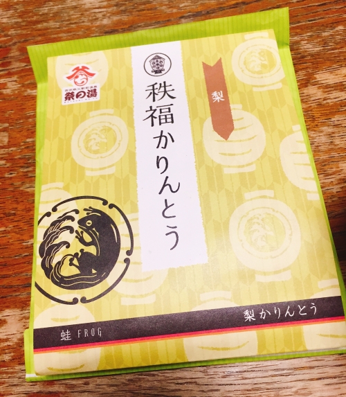 このかりんとうは、この祭の湯限定の味がいくつかあります。今回紹介するのは、筆者が必ず買って帰る限定味の蜂蜜味と梨味。