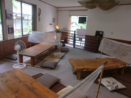 ほっとすぽっと秩父館は休憩処としても利用できます。囲炉裏を囲むように椅子が並べられ、風情のある空間です。奥にはテーブル席もあるため、家族連れや団体でも利用が可能です。
