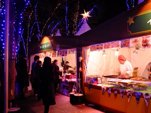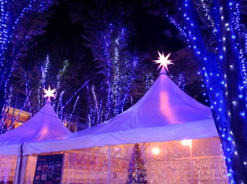 毎年様々なテーマを設けて開催されるクリスマスイベントですが、2018年のテーマは、ベルリンのクリスマスマーケットジャルダンメルクが、イメージされています。テントの天辺に輝くのは、ベツレヘムの星。その星のもとで、美味しいものがいただけます。