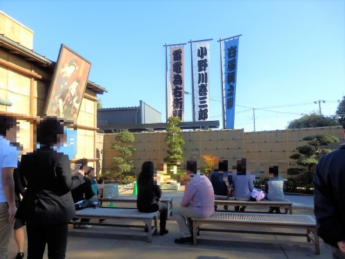 鬼平犯科帳に出てくる弥勒寺(みろくじ)界隈を表現した両国広小路には、見世物小屋ののぼりや江戸の植栽を見ながら休憩できる場所があり、日によっては、猿回しなどの大道芸や夕市などが行われます。殺陣や南京玉すだれなども行われるので、興味のある方は公式サイトをご確認ください。