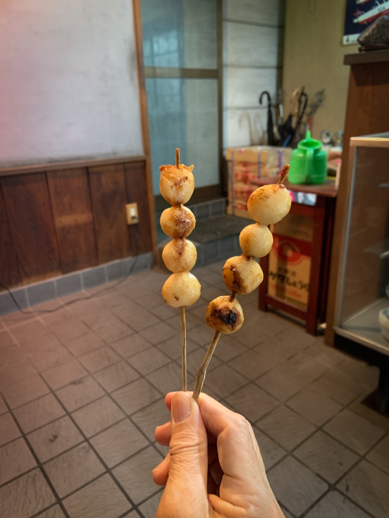 時の鐘のすぐそばにある団子屋さんです。炭火焼きの団子を1個80円で販売しています。テイクアウトがメインですが、店内のスペースでいただくこともできます。
