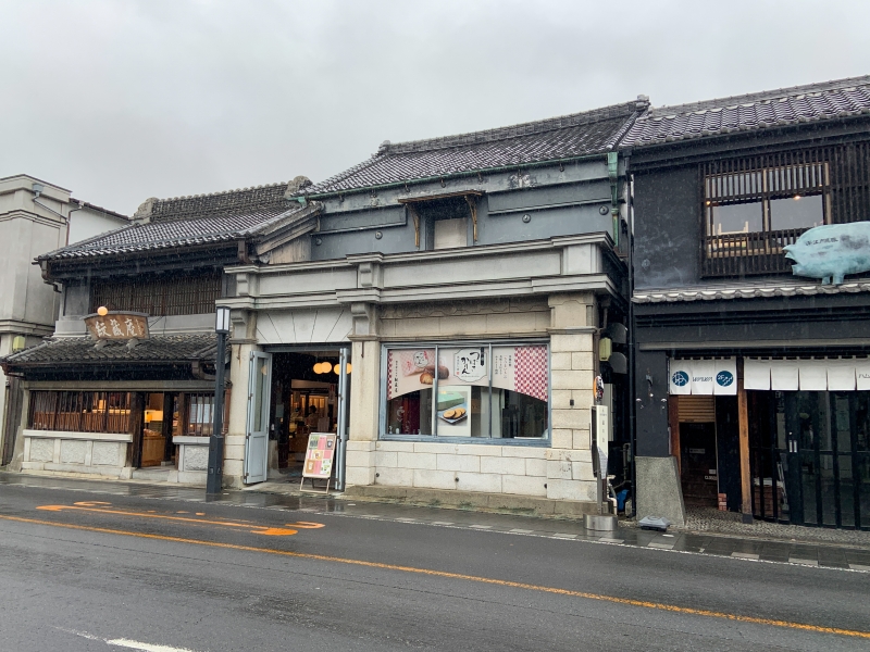 これらの建物の1階では、お店を営んでいるところも多く、一帯は川越一番街商店街とも呼ばれています。和菓子店やお茶屋さん、酒店など、古くから営業していると思われる店舗が見られます。