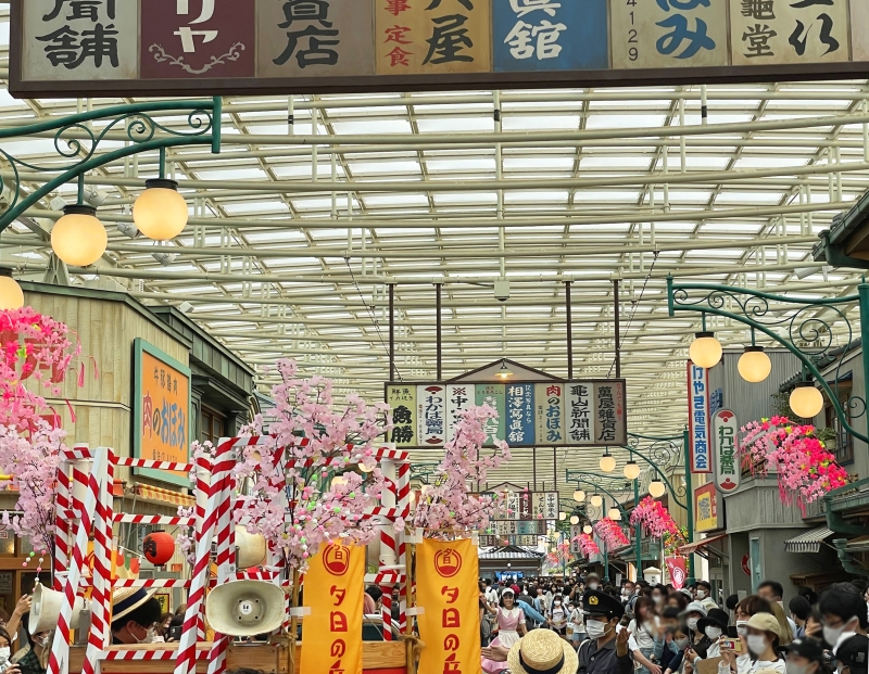 見どころのひとつが、「夕日の丘商店街」。1960年代の昭和の古き良き時代を感じられる、30もの店舗が集う商店街では、チンドン屋がどこからともなく現われたり、アクロバットなパフォーマンスや歌謡ショーなどのライブパフォーマンスが繰り広げられます。来園者も一緒に歌ったり踊ったり参加すれば、もっと楽しめますよ!
