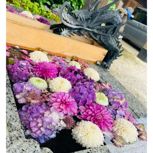 近年では手水舎にいつも綺麗なお花が飾られていて、参拝に訪れた人々の心をほっこりと癒してくれるスポットです。