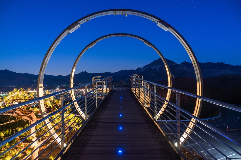 秩父市と皆野町にまたがる、高さ581.5mの蓑山山頂に広がる公園。”日本の夜景百選”にも選ばれた夜景スポットです。加えて条件がそろうと雲海も発生し、その光景は息をのむほどの絶景!