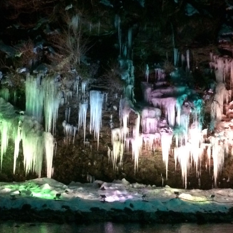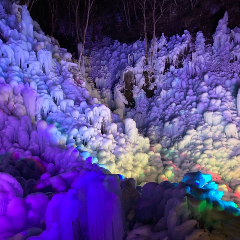 この氷柱は、毎年1月上旬~2月中旬にかけて楽しめます。また期間・曜日限定で夜にはライトアップされ、より幻想的な世界に。夜のドライブにおすすめのスポットです。
