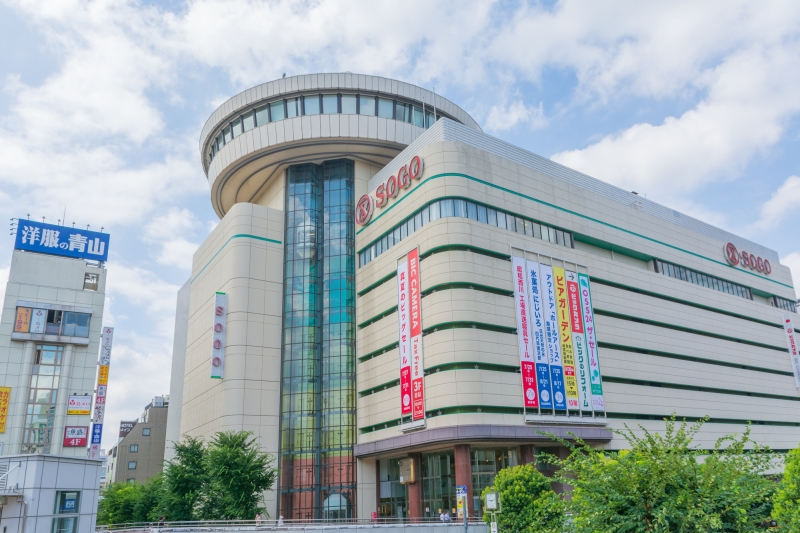 2階の正面入り口がペデストリアンデッキとつながっており、大宮駅西口と直結している「そごう大宮店」。レディース、メンズ、キッズのファッションをはじめ、インテリア、雑貨、コスメなど、カジュアルなものから高級ブランドまでが揃う老舗百貨店です。