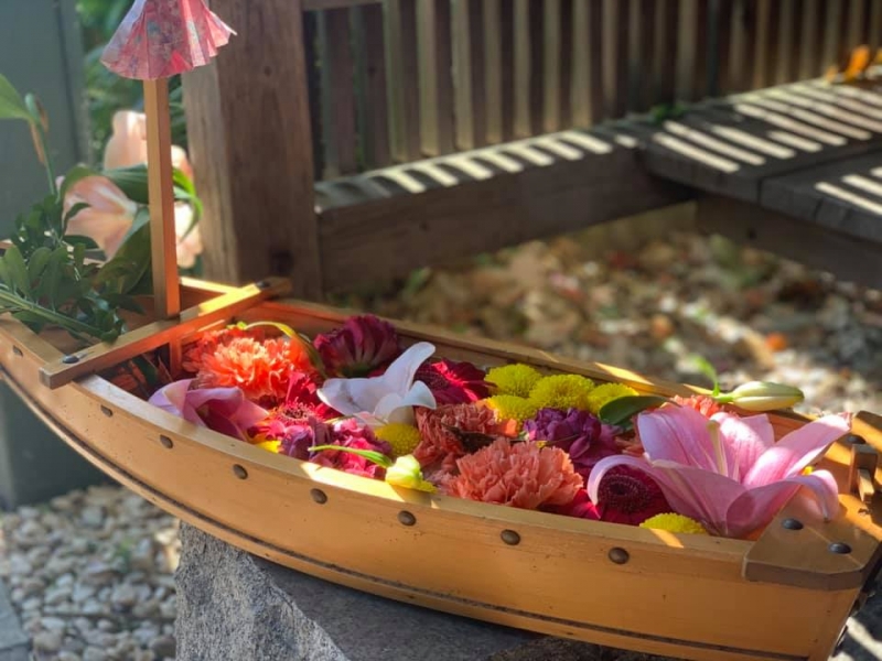 花手水とは、神社やお寺をお参りする前に手や口を清める手水舎を花々で飾ることで、その習わしは古来よりあります。