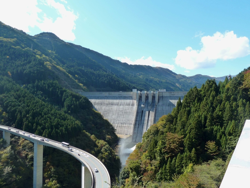 雄大な山々を見渡す景色が美しく、また下流の方には「雷電廿六木橋」というループ橋があり、ループ橋から眺めるダムと湖の景色も見応えがあります。滝沢ダムは一般開放されており自由に見学ができます。