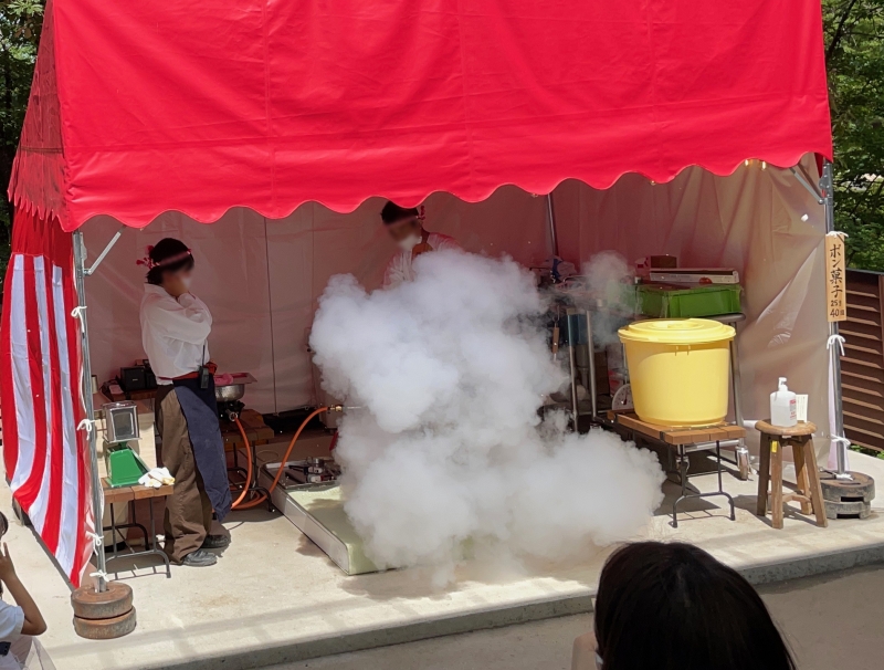 30分から45分間隔で商店街に「ポン!」という爆発音が響き渡ると、できたてアツアツのポン菓子が楽しめ、