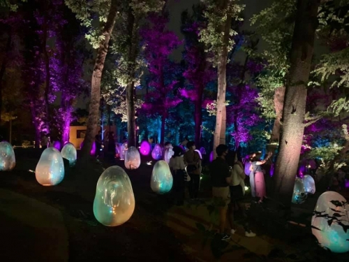 かつての共存が現代風にアレンジされたかのような武蔵野のどんぐりの森。自然や人々に呼応して変化する幻想的な光のアート空間を心行くまで楽しめます。