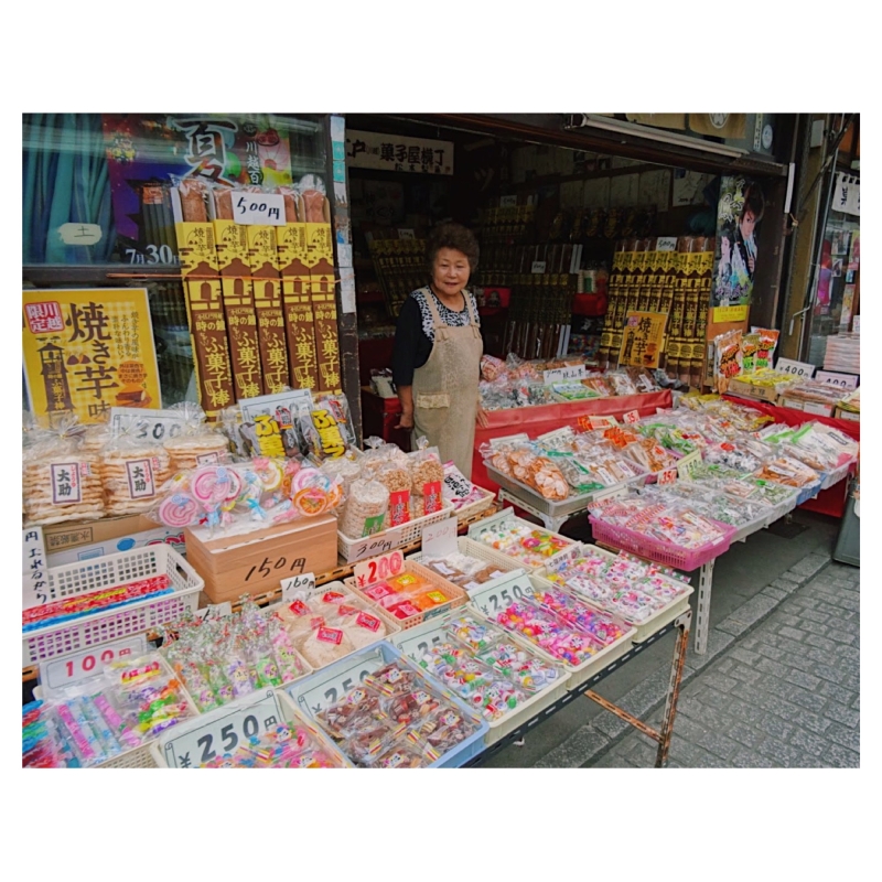 川越の蔵造りの町並みからもすぐ、石畳沿いに20軒ほどのお菓子屋さん、駄菓子屋さんが並ぶ素朴な通りです。こどもが楽しいのはもちろん、大人世代も子供の頃に戻ったような気分でワクワク。