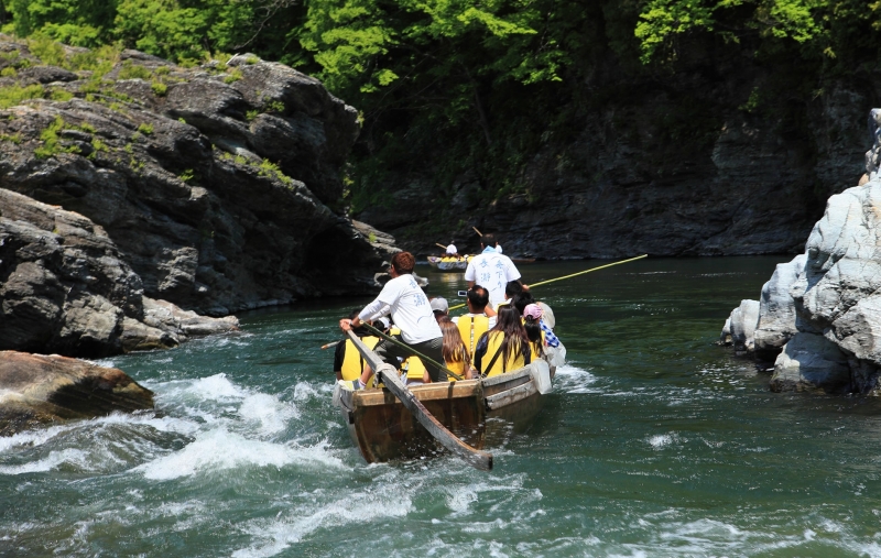 岸を渓谷に囲まれた荒川を、伝統的な和舟に乗って豪快にくだるレクリエーション。親鼻橋から岩畳までのAコースと、岩畳から高砂橋までBコースの3キロずつ、または親鼻橋から高砂橋までの6キロを一気にくだるコースを選べます。