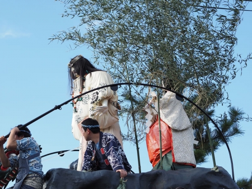 「佐原の大祭」は関東三大山車祭りのひとつ。7月に本宿で行われる夏祭りと、10月に新宿で行われる秋祭りの総称です。本宿は小野川をはさんで東側、新宿は西側の地域を指します。山車の上には江戸・明治期の人形師が制作した、高さ4メートルにおよぶ大きな人形が飾られ、日本三大囃子「佐原囃子」を響かせながらまわる姿は風情たっぷり。夏祭りには10台の山車、秋祭りには14台の山車が曳きまわされます。