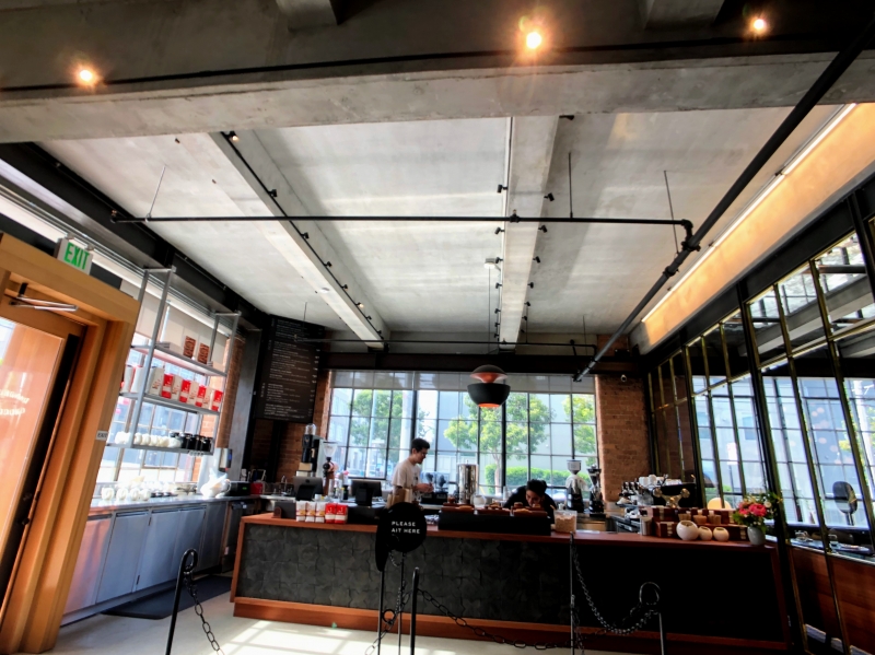 工場部分をぐるりと囲むように、カウンターも設置されており、ここでカフェでオーダーした飲み物などを楽しむこともできます。1番奥にはゆっくり座って寛げるエリアも設置されていますよ。