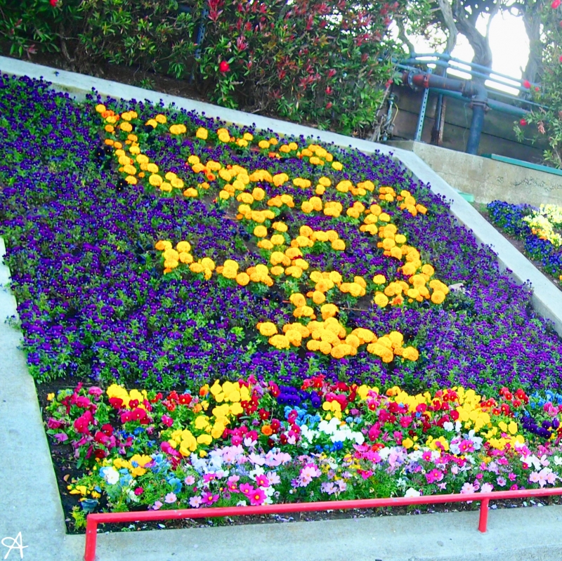 海沿いに少し進むと、左手にオレンジの屋根に緑のドアがついた白い建物が出てきます。その建物を通り越したら左後方に上り坂が見えてきますので、登ります。横断歩道が見えてきたら、右に曲がります。また坂道が出てきますので登っていきますと、駐車場と公園が右手に見えてきます。