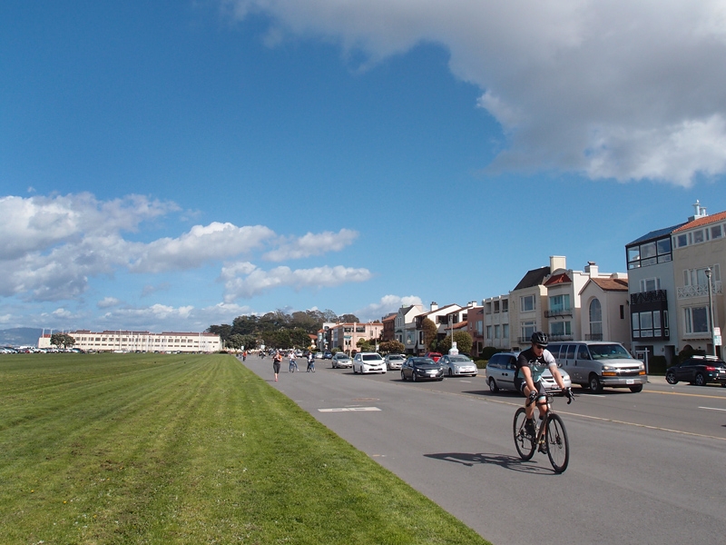 サンフランシスコ北部の湾沿いで、プレシディオと観光名所のフィッシャーマンズワーフに挟まれたエリアがマリーナ地区です。サンフランシスコ湾に面した芝生の広場(Marina Green)はアルカトラス島やゴールデンゲートブリッジが一望できる一等地ですが、訪れる人々はサッカーをしたり凧を揚げたりピクニックをしたりと、比較的のんびりとした時間を過ごしています。