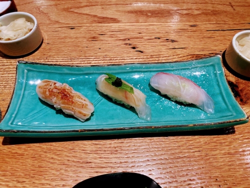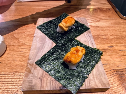 お寿司はおまかせではなく、10の握りと小鉢がついたティスティング・コース(USD86≒9,890円)を提供しています。一品料理をいくつかと、このコースを一緒に頼むとちょうど良い塩梅ですよ。