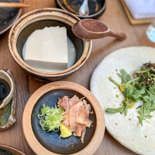 メニュー構成はどれもシェアが前提なので、複数人での食事にもぴったり。備長炭で焼き上げる焼き鳥や手作り豆腐などこだわり抜いた料理はどれも絶品です。